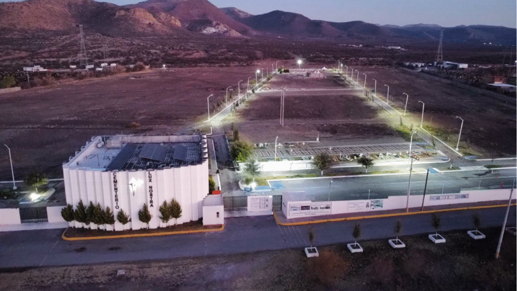 Rompiendo parámetros y superando expectativas, se logro realizar un proyecto en varias etapas de desarrollo que armoniza perfectamente los temas espirituales materializados en amplios espacios de reunión, estancia y recorridos. Espacios abiertos desarrollados en el mismo camposanto como : muros verdes en secuencia de muros solidos creando áreas de meditación en disfrute de la naturaleza, corrientes de viento, juegos de iluminación natural como asoleamientos y sombras de día, así como excelente iluminación artificial nocturna para habitar espacios. La adaptacion a las estaciones y cambios climáticos brindaran el justo contacto con todos los elementos naturales de agua, tierra, viento y vegetación que brindan un recinto lleno de vida para inspirar la esperanza en la trascendencia